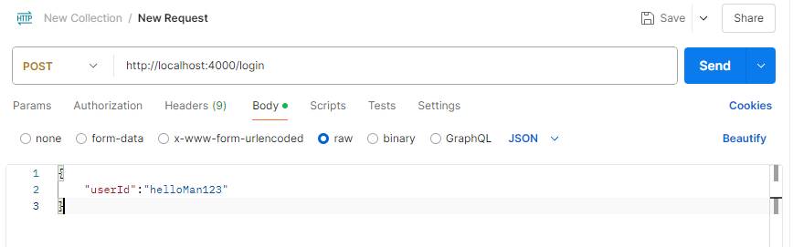 요청에서 body를 통해서 받아올 userId를 변수로 넣어주며 변수를 생성해주자.