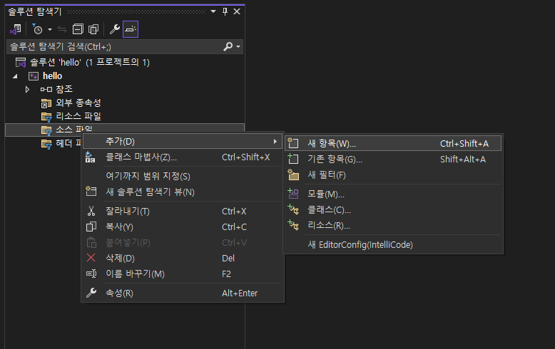이제 프로젝트에 소스파일을 추가해야 합니다.
