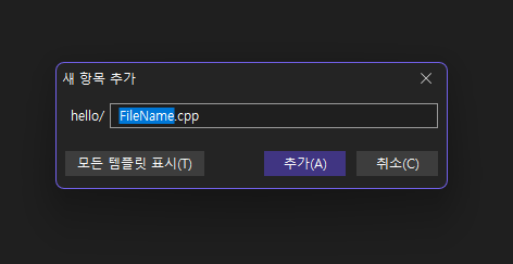 이 새 항목 추가 창이 뜨면 아래 모든 템플릿 표시를 눌러서