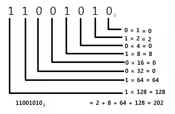 십진법의 경우는 자릿수가 늘어날 때마다 10을 곱했으니 2진법의 경우는 자릿수가 늘어날때마다 2을 곱해줄 수 있다.
