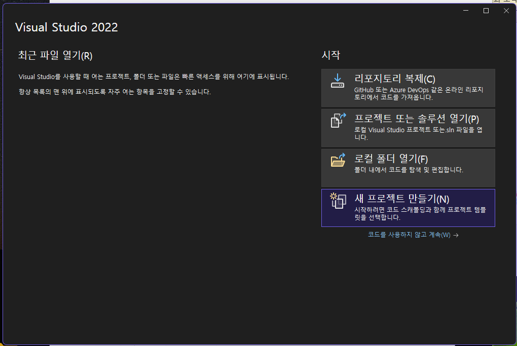 이제 새 프로젝트를 만들어보자.