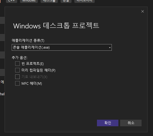 Windows 데스크톱 마법사를 선택해서 프로젝트를 생성해주자.