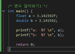 앞에서 말했듯 실수형에는 float와 double이 있다.