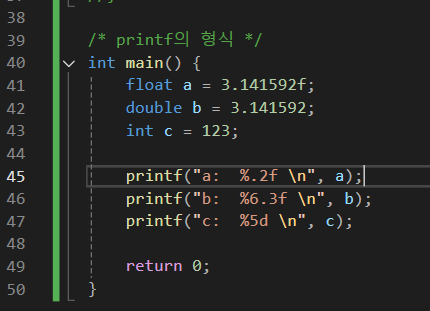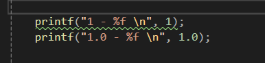 주의할 점은 printf에서 %f로 수를 출력할때는 언제나 뒤에 소수점을 붙여줘야 한다는 점이다.