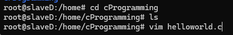 home디렉터리로 이동 한다음에 폴더를 하나 생성 하고 vim helloworld.c를 입력해서 helloworld.c파일을 만들어주자.