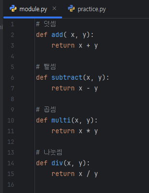 그래서 함수의 사용시에는 아래와 같이 모듈명을 앞에 붙여줘야만 한다.