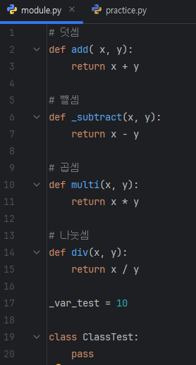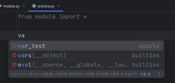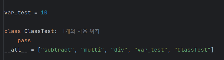 이렇게 명칭을 리스트의 형태로 구현해주면 외부에서 from - import * 을 사용해서 모듈을 import했을때