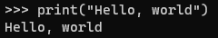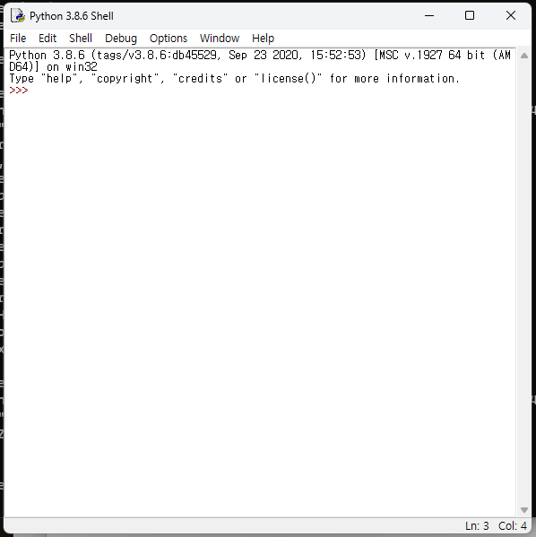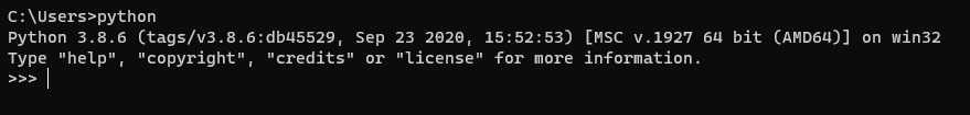 그럼 파이썬 버전에 대한 정보를 보여주고 파이썬 인터프리터 모드로 진입한다.