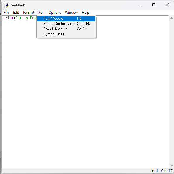그렇기에 사용하는 방법이 있는데 파이썬 쉘에서 File - New File을 선택하면