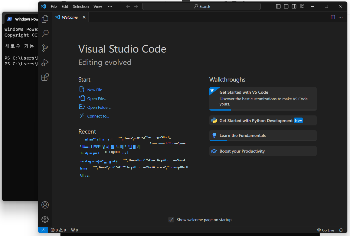 아이콘 선택하여 실행하는것이 아 powerShell에서 실행하기