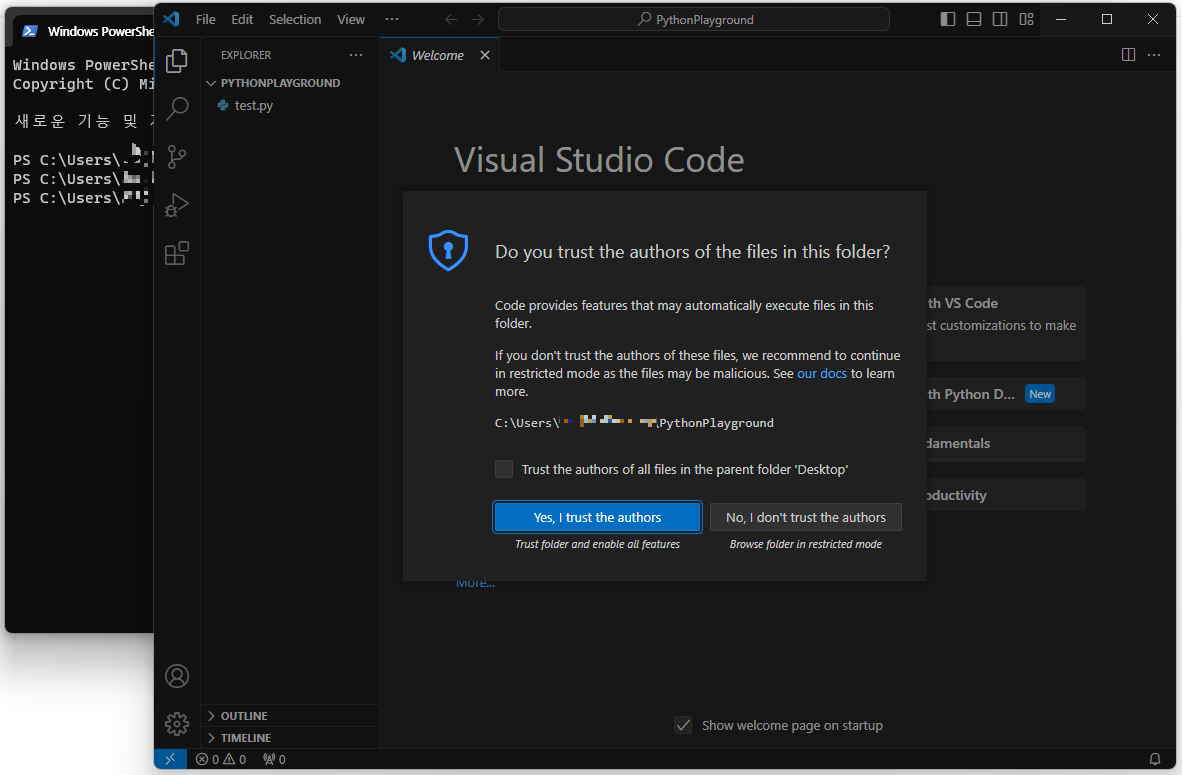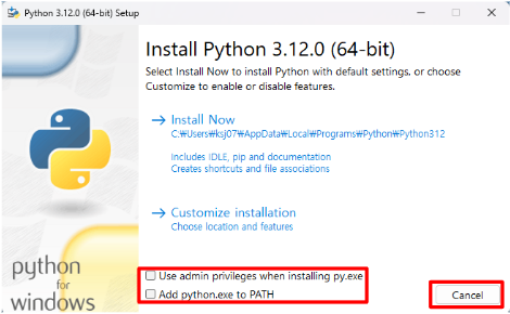 1. User admin privileges when installing py.exe - py.exe를 설치할때 관리자 권한으로 실행한다