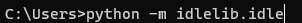 찾기로 IDLE를 찾아서 실행시키거나 cmd 창에서 "python -m idlelib.idle"를 입력하면 실행이 된다.