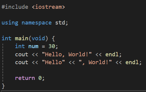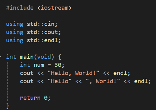 C++ 버전의 Hello World 출력 프로그램
