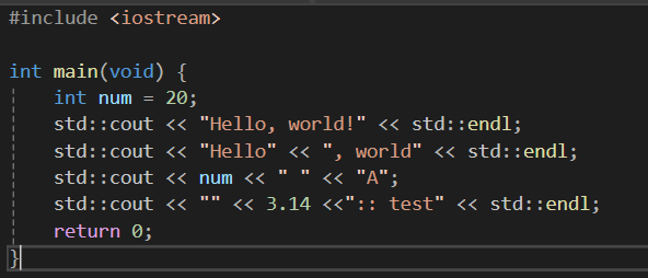 std:cout<<'출력대상1'<<'출력대상2'<<'출력대상3';