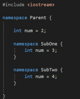 - namespace Parent 안에 존재하는 SubTwo안에 존재하는 num