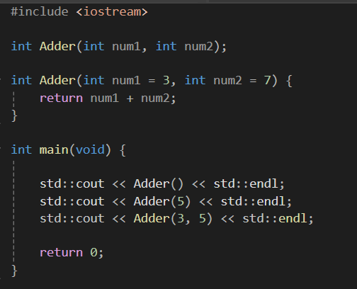int DefaultVal(int num = 12){