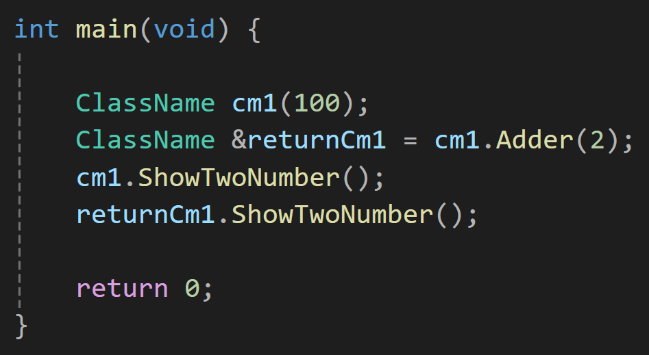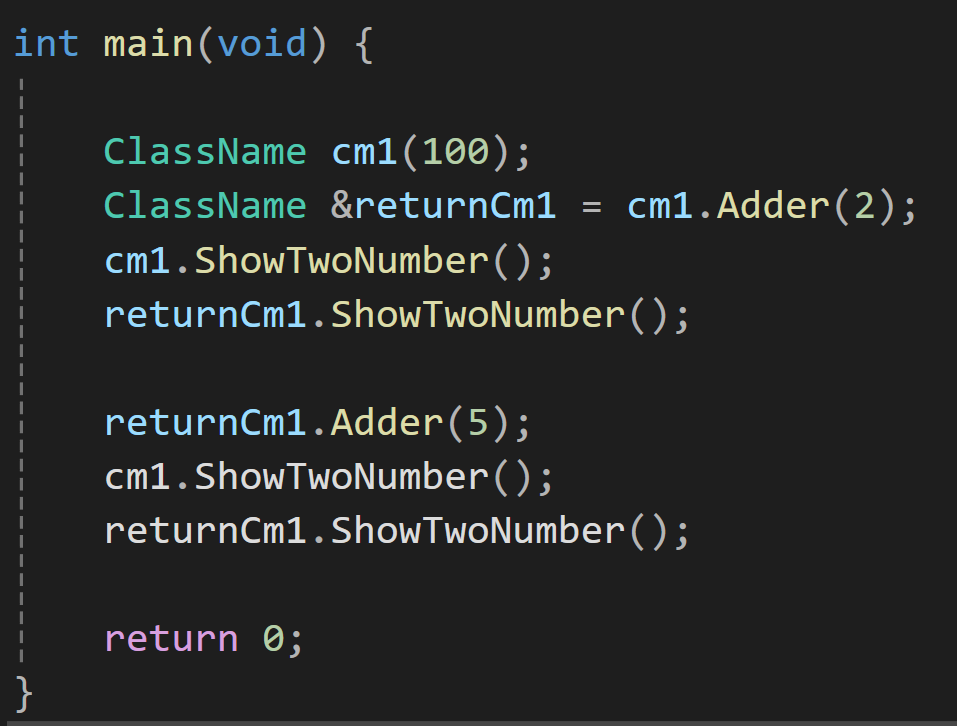 여기서 *this를 반환하고 이걸 ClassName&의 참조자 형태로 반환하겠다고 함수를 선언하면 지금 보는 그 객체 자체를 반환한다고 보면 된다.