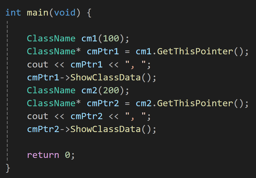 마지막으로 GetThisPointer라는 함수를 호출하면 this를 반환한다.