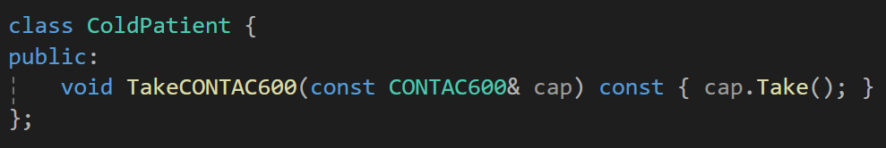 그런데 모두 동반되거나 약을 복용하는 방법이 매우 제한되어 있다면 캡슐화가 전혀 되어 있지 않은 코드가 되는 것이다.