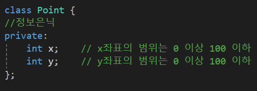 우리가 제한했던 Point의 멤버변수의 범위 0 ~ 100의 이내의 값의 제한과