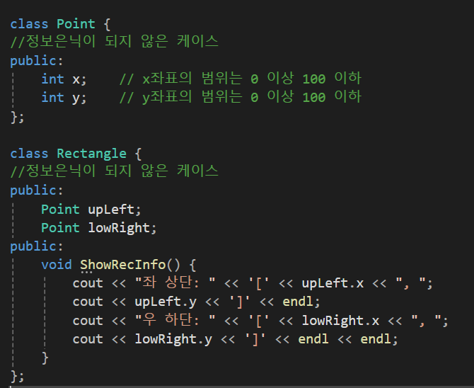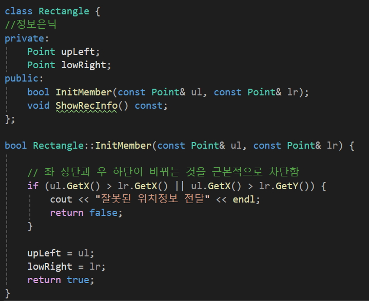 Rectangle 클래스의 정보은닉 결과