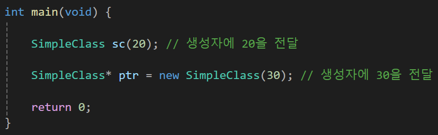 objPtr1 -> m = 20;//객체의 주소값과 객체의 정보를 가진 objPtr1을 통해 객체의 m에 접근
