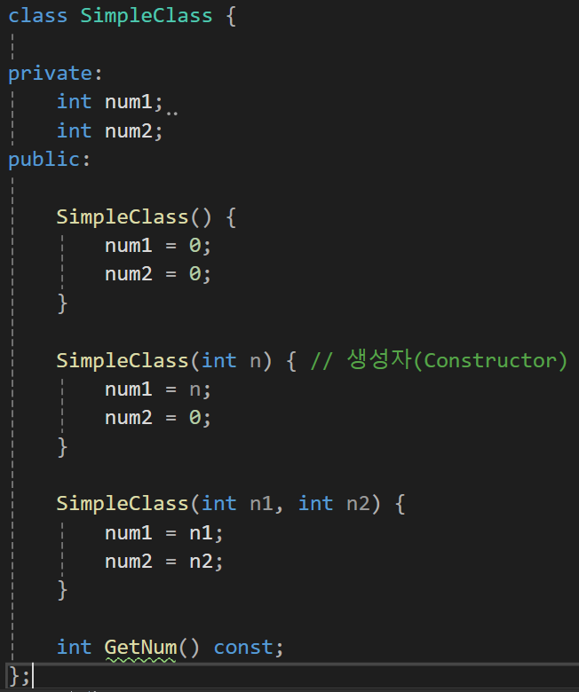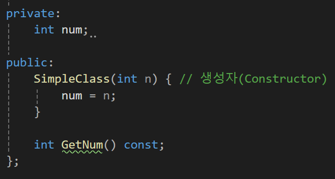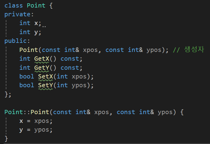 그리고 그 클래스의 멤버변수에 접근하는 함수를 별도로 정의해서