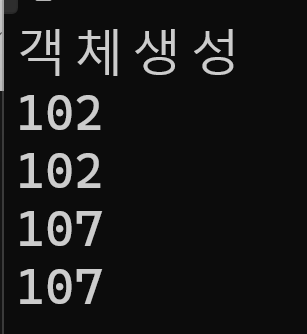 객체를 생성하면서 100을 전달하고 그 주소값과 값을 출력한다.