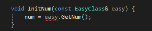 easy를 통해서 GetNum을 불렀다고 한다면 동일하게 컴파일러가 같은 이유로 에러를 띄운다.