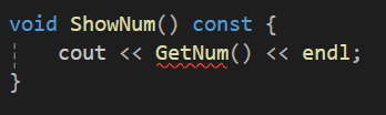보면 GetNum은 num이라는 멤버변수를 변경하지않는데도 불구하고 ShowNum내부에서 호출된 GetNum함수에는 에러가 발생하고 있다.