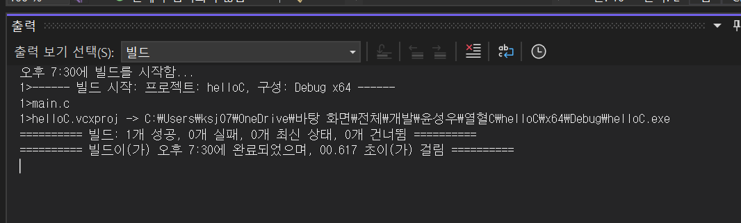 Visual Studio에서 C프로그램 빌드하기