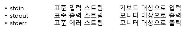 - stdin/stdout/stderr 와 같이 프로그램의 시작과 동시에 자동으로 형성되는 표준 스트림이 존재한다.