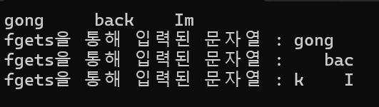 이렇게 끝난건 어쩌다 보니 배열부터 쪽 읽다가 널문자를 만났기 때문에 종료된것이다.