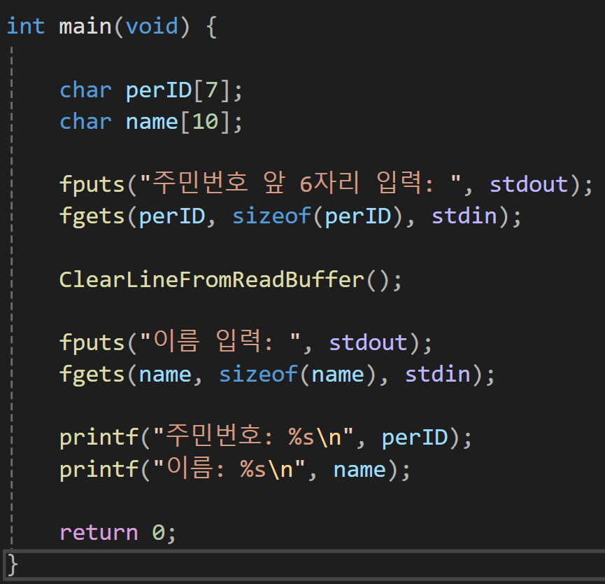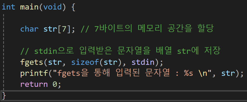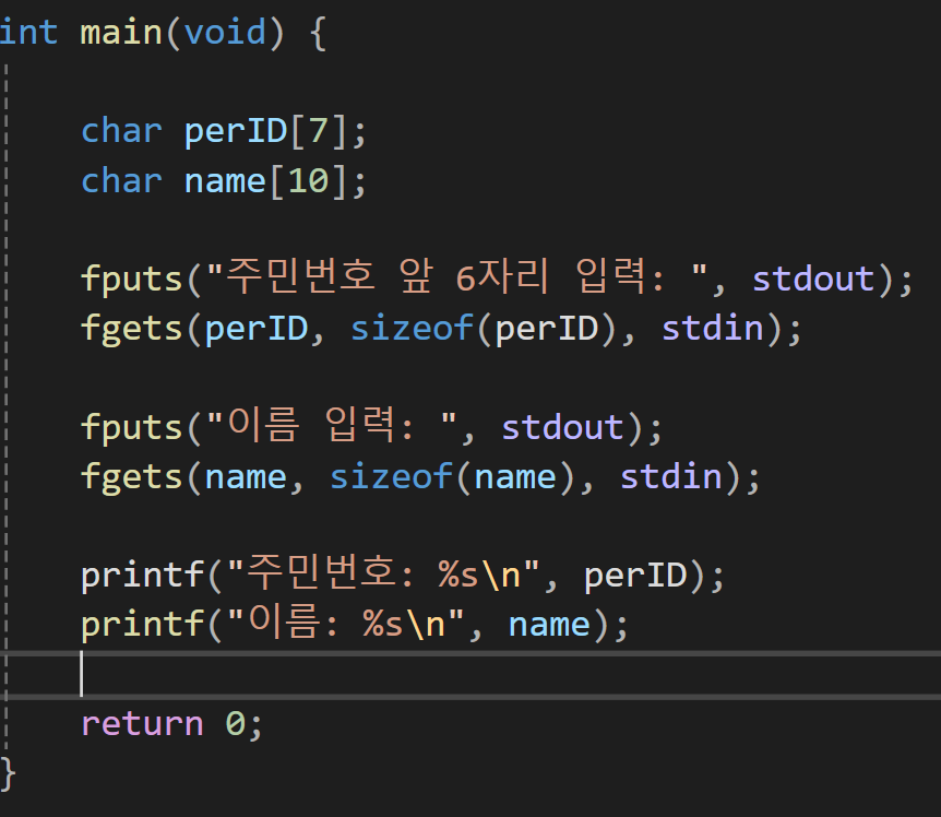 위와 동일하게 getChar의 경우는 값을 키보드로 입력을 받고 fgetc의 경우는 입력받을 장치를 무엇을 사용할지 결정할 수 있다.