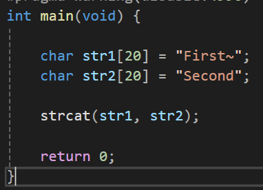 그렇기에 strcat을 사용한다면 dest의 크기가 src를 붙였을때 이걸 모두 수용할 수 있는 크기를 가져야만 한다.