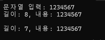 첫번째는 str2에 123을 넣어서 널문자를 넣지 않겠다고 하는 케이스가 있고 두번째는 12를 넣고 마지막에 널문자를 넣어 복사하는 케이스가 있을 것이다.