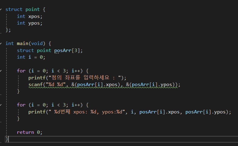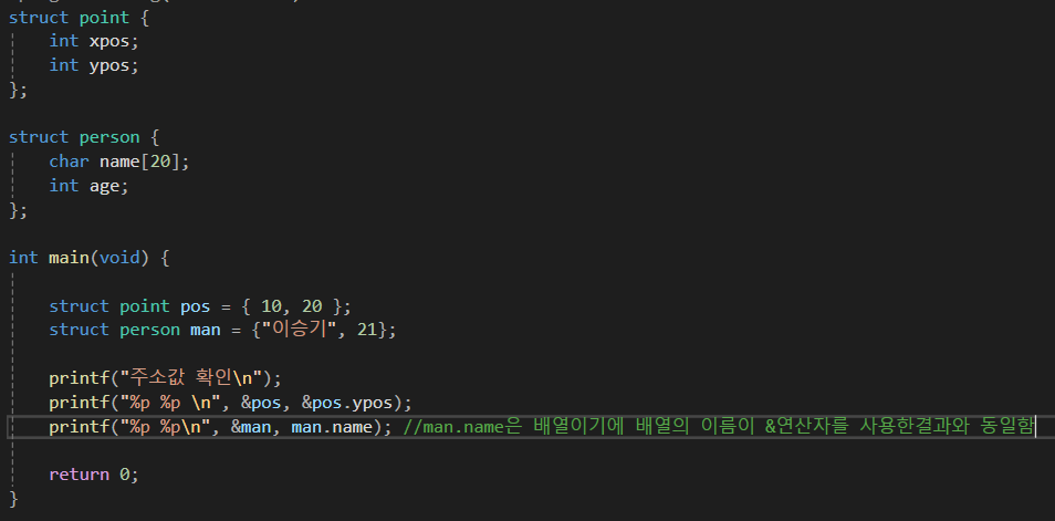 struct point * posptr = &pos; //구조체 point의 포인터 변수 선언