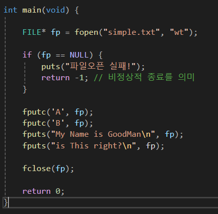 이게 결국 표준스트림에 대한 지시자인 것이고 fp가 stdout혹은 stdin가 했었던 역할처럼 fopen의 첫번째 인자로 전달한 파일명에 해당하는 파일을 가리키는 지시자가 되는 것이다.
