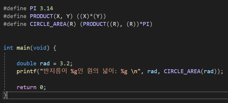 이렇게 명령문은(#define)은 소멸되고 PI는 단순 치환된다.
