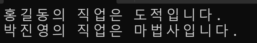 라고 작성해주면 #A + 의 직업은 + #B + 입니다로 한 문장으로 되면서 전달인자를 A와 B에 문자열로 넣으면서 해결을 할 수 있다.