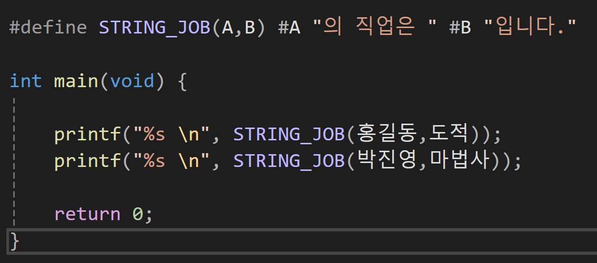 #define STRING_JOB(A,B) "A의 직업은 B입니다."
