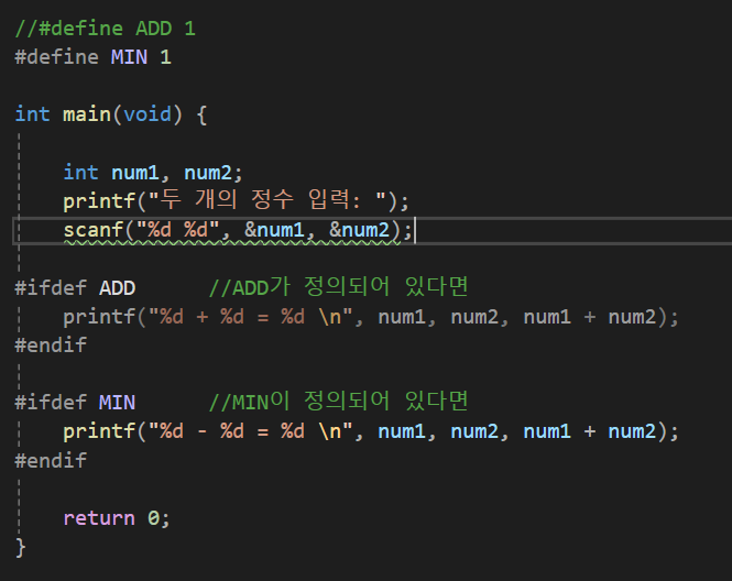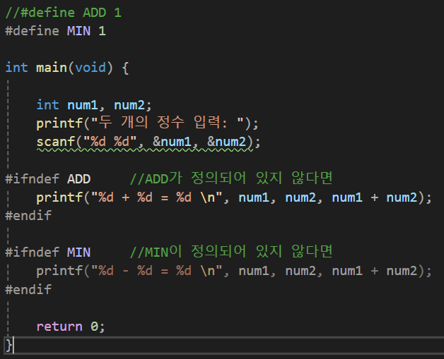 #if와 #ifdef와 #ifndef는 모두 #else를 추가해서 조건이 참이 아닌 경우 컴파일 대상에 포함시킬 문장들을 구성할 수 있다.