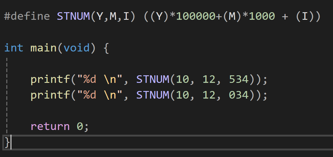 #define STNUM(Y,M,I) YMI ===> 치환 대상 YMI를 연결해 두면 그냥 YMI로 인식된다.