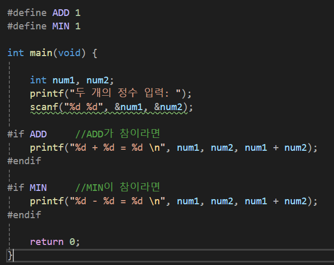 위의 조건중 하나의 문장만 컴파일의 대상으로 포함된다.