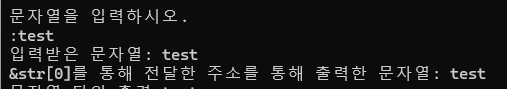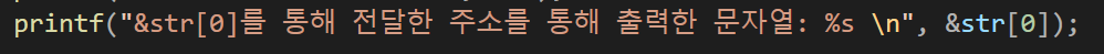 그래서 문자열의 첫번째 요소의 주소값을 가진 str(char str[] 문자 배열의 이름)을 전달한 것이고