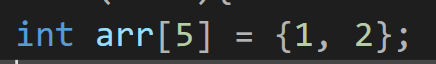 또 선언과 동시에 초기화 할때 배열의 크기보다 작게 값을 넣어 초기화 하는 경우