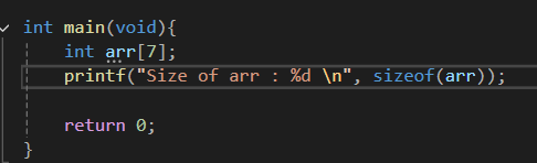 그래서 길이가 7인 int형 배열의 경우는 int형이 4바이트를 갖기에 4 x 7인 28의 크기를 가진다