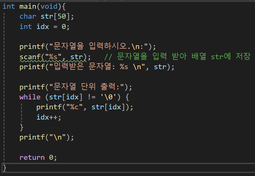 그리고 scanf를 통해 문자열을 입력받을 때 주의해야할점은