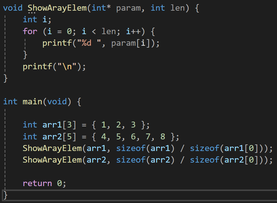 //배열의 이름 arr은 int형 포인터이므로 매개변수는 int형 포인터 변수이다.
