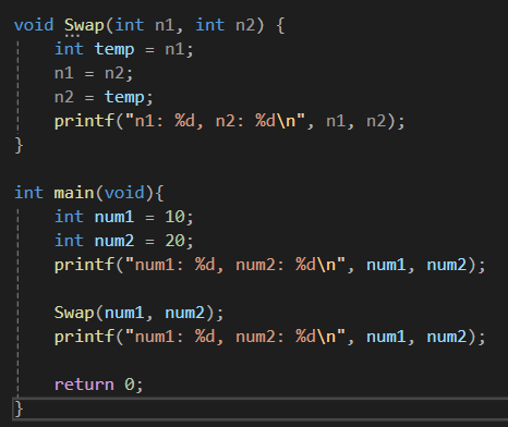 num1과 num2에 주소값이 아닌 그냥 값을 넣어줌으로써(Call-by-value)